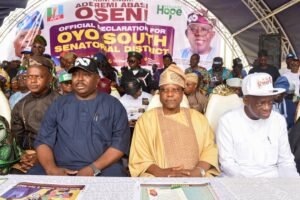 A mammoth crowd of supporters, party leaders, and stakeholders on Sunday witnessed the formal declaration of Hon. Engr. Remi Oseni for the Oyo South Senatorial seat ahead of the 2027 general elections.